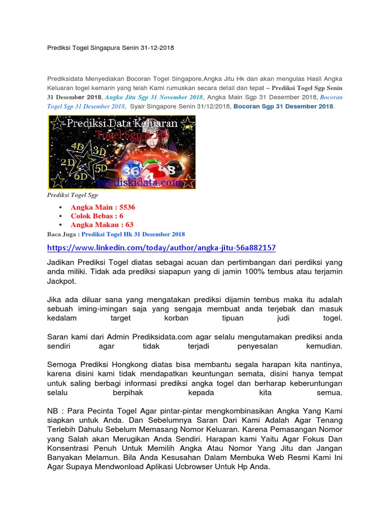 Prediksi Togel Singapura Senin 31 12 2018 Pdf