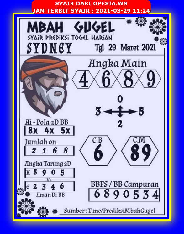 Source: Syair Sdy Hari Ini Senin 29 Maret 2021 Opesia Official