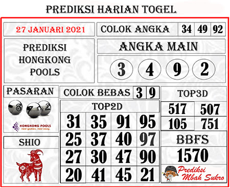 Prediksi Togel Hongkong Rabu 27 Januari 2021 Prediksitogel Jp