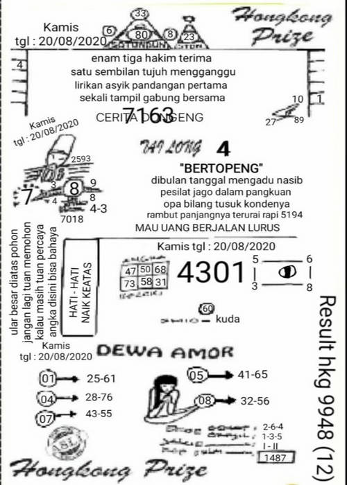 Kode Syair Hongkong 20 Agustus 2020 Forum Syair Togel Hongkong Singapura Sydney