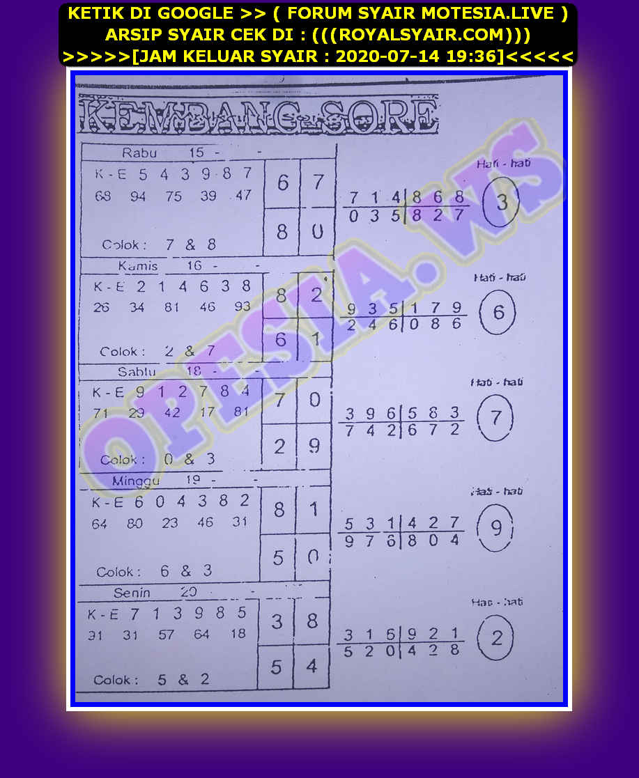 Source: Syair Bd Sabtu 04 Juli 2020 Result 1650 Sahh Facebook