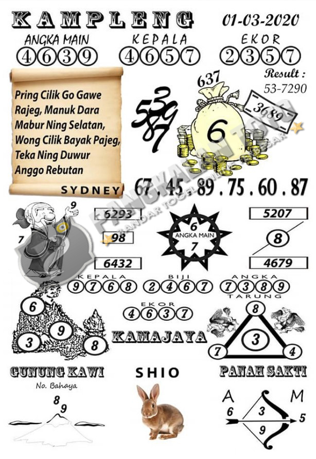 Prediksi Syair Sydney 1 Maret 2020 Togel Sydney Pangkalantoto