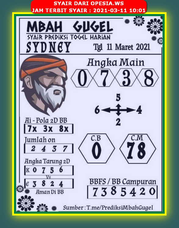 Source: Syair Sidney Senin 11 Maret 2019 Opesia Official
