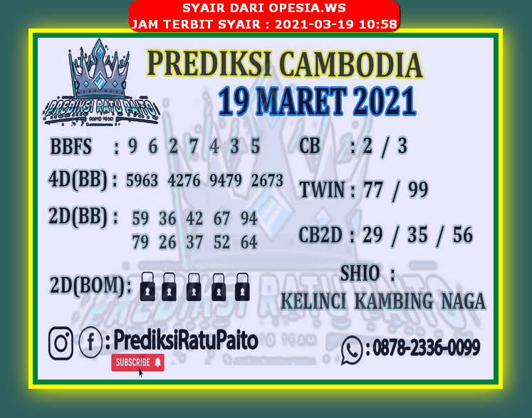 Source: Syair Sdy Hari Ini Jumat 19 Maret 2021 Opesia Official