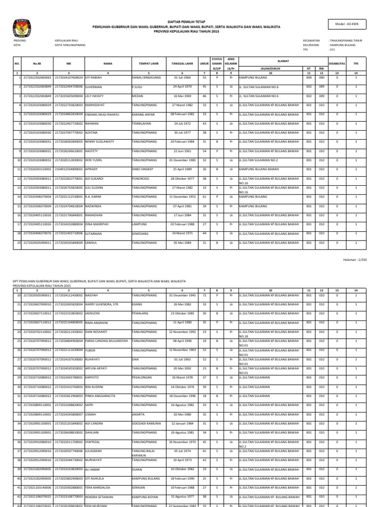 Source: Daftar Pemilih Tetap Pemilihan Gubernur Dan Kampung Bulangpdf Pdf