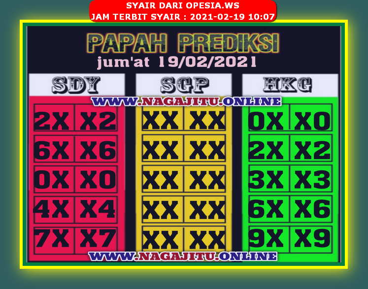 Source: Syair Sdy Hari Ini Jumat 19 Februari 2021 Opesia Official