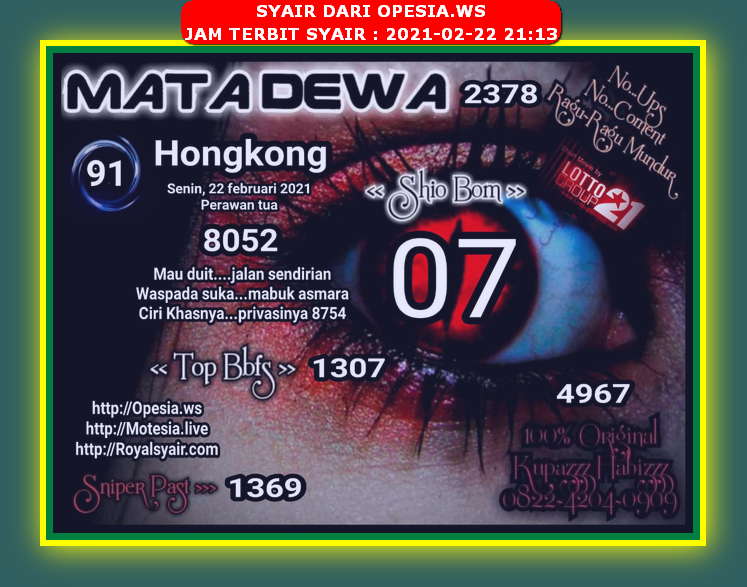 Source: Syair Hk Hari Ini Senin 22 Februari 2021 Opesia Official