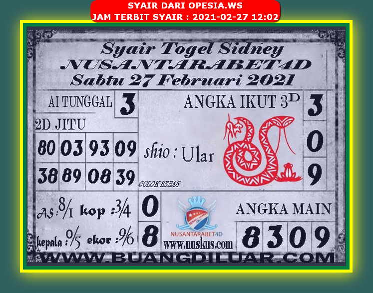 Source: Syair Sdy Hari Ini Sabtu 27 Februari 2021 Opesia Official