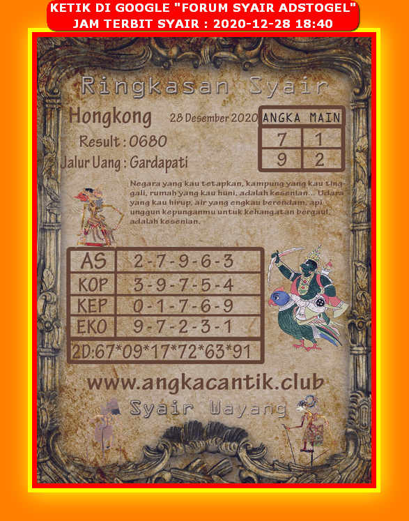 Syair Hongkong Malam Ini Senin 25-01-2021.