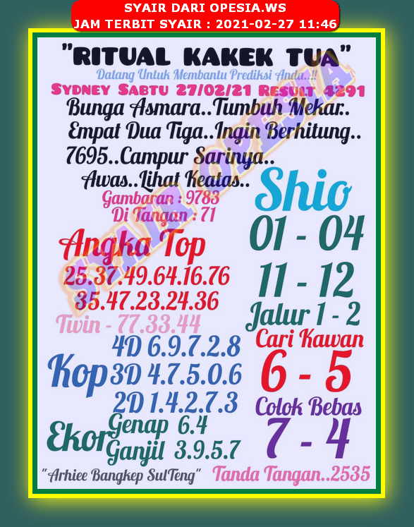 Syair Harian Sdy 27 Februari 2021 Kode Syair Sgp Hk Sd Motesia